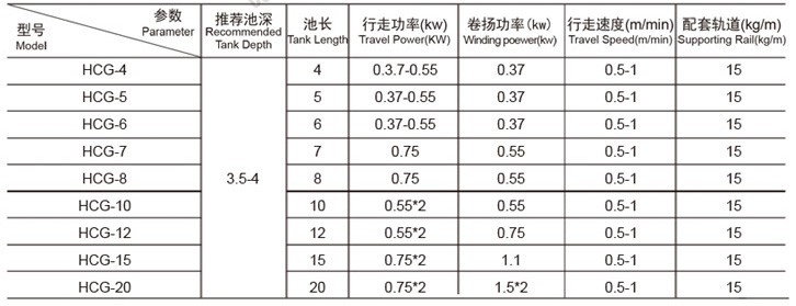 本設備由四點支撐行走大梁橫跨在平流式沉淀池上,雙邊驅動,池兩邊均鋪設鋼軌,從池的一端運行到池子的另一端,邊行走邊吸泥,撞到行程控制,折返行走,回程吸泥,完成一個工作周期。